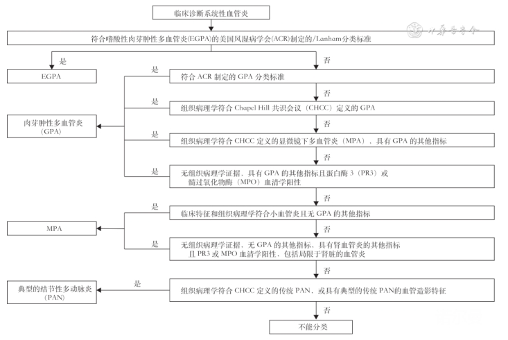 血管炎是一组以血管壁或血管周围组织炎症和坏死为基本特征的自免疾病。抗中性粒细胞胞浆抗体 (ANCA) 相关血管炎(AAV)是临床最常见的一类系统性小血管炎,包括肉芽肿性多血管炎(GPA)、显微镜下多血管炎(MPA )和嗜酸性肉芽肿性多血管炎(EGPA)。