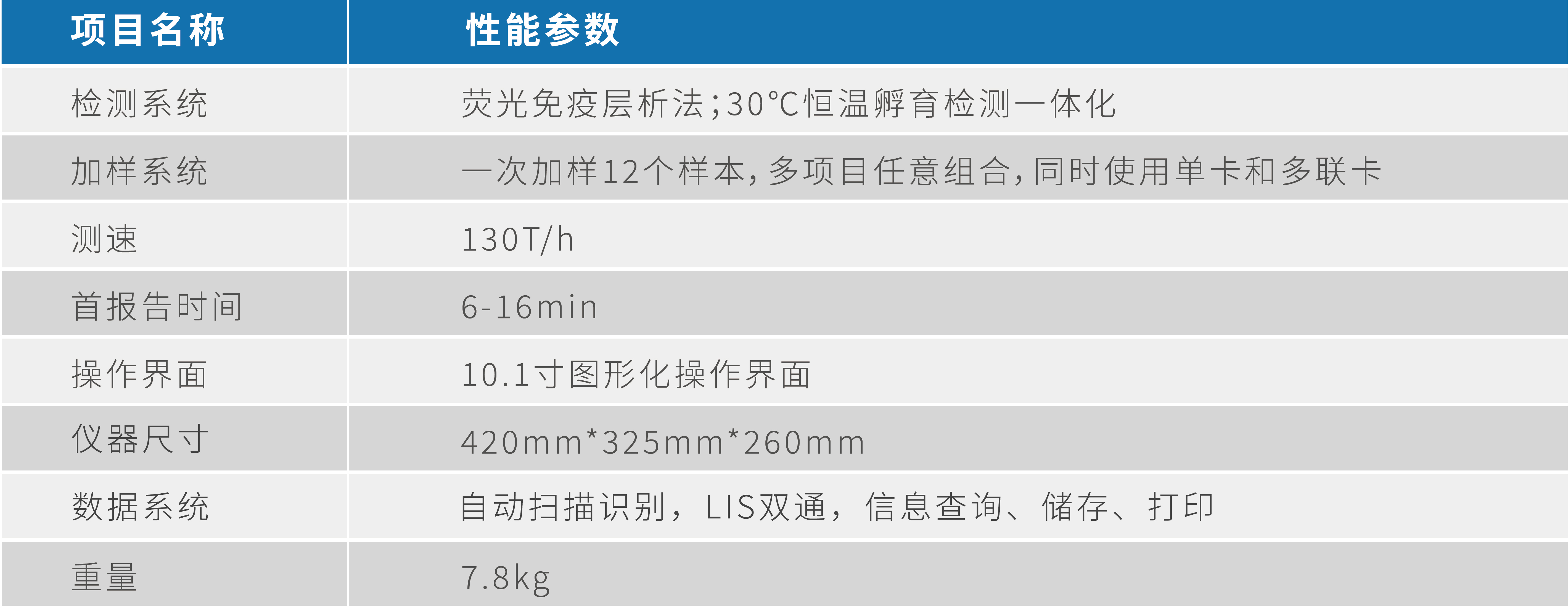 ·操作便捷 孵育检测一体机,使用方便 全触摸式大屏幕,更好的操作体验 ·智能灵活 自动扫码识别,LIS双通 12独立通道,提高检测效率 ·特色项目 CRP/SAA二联卡,ASO/RF/CRP三联卡